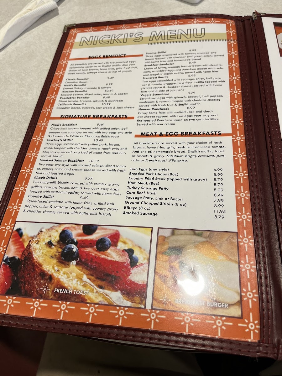 Nicki's Omelette & Grill offers a straightforward, comforting menu focused on classic American breakfast and casual lunch favorites. The selection leans into hearty, satisfying dishes that fit well with a relaxed morning or midday meal. Whether you're stopping by for a warm cup of coffee paired with freshly made toast or settling in for a filling omelette like the Gobbler or Alaskan, the menu caters to those looking for familiar flavors served with care.